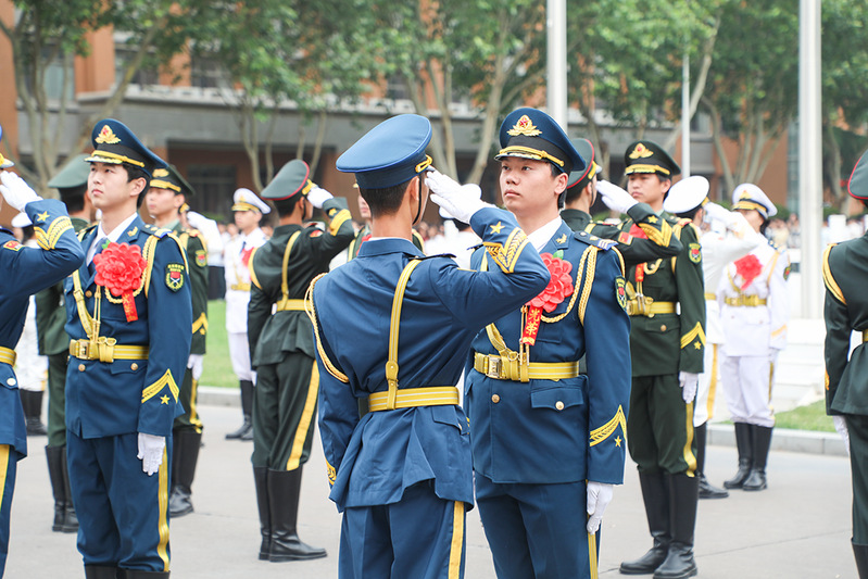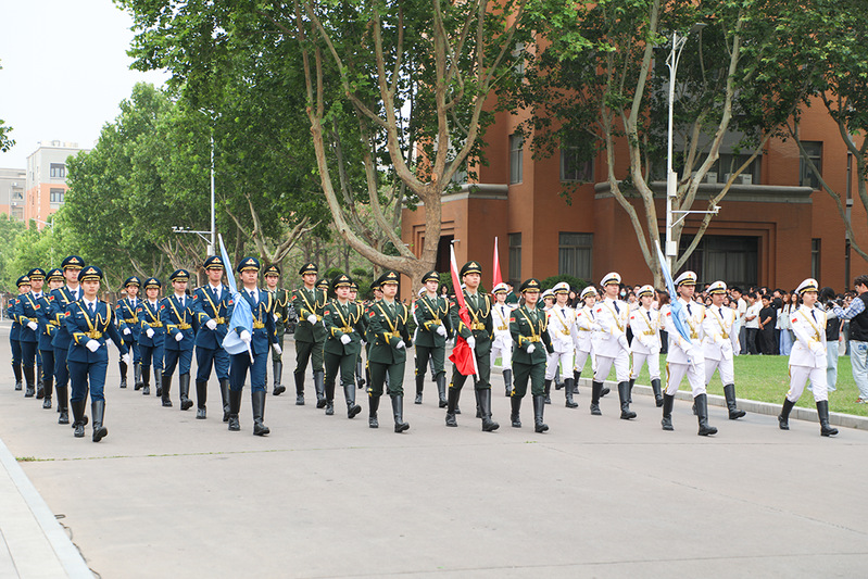 校党委书记吴建军在讲话中对第二十届国旗护卫队圆满完成使命表示祝贺,对第二十一届国旗护卫队寄予厚望,望其传承优良品质,捍卫国旗尊严。吴书记结合习近平总书记对青年的寄语,向同学们提出三点希望:心怀“国之大者”,让理想与时代同频共振;脚踏实地,做能吃苦的新时代好青年;勇于追梦圆梦,让理想在实践中开花结果。最后,号召广大郑商学子学习习近平总书记在河南考察时的重要讲话精神,在民族复兴征程上勇担先锋、奉献青春。