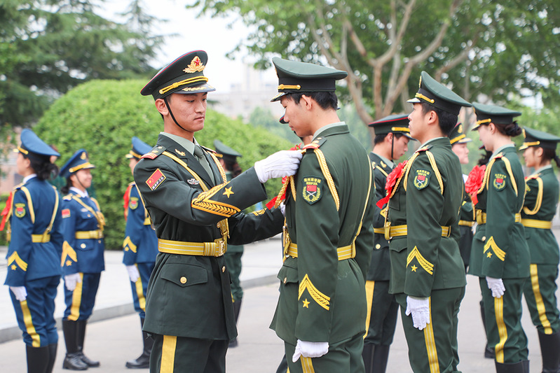 学工部部长路程宣读了《关于对第二十届国旗护卫队的表彰和对第二十一届国旗护卫队成员的任命决定》。在热烈的掌声中,第二十一届队员为第二十届队员佩戴光荣花,与会领导为优秀国旗卫士代表颁发荣誉证书、集体照和纪念奖章。第二十届国旗护卫队成绩斐然,众多队员在担任学生干部、获取荣誉奖项和奖学金方面表现突出。