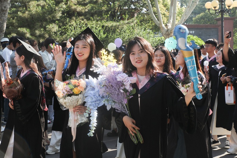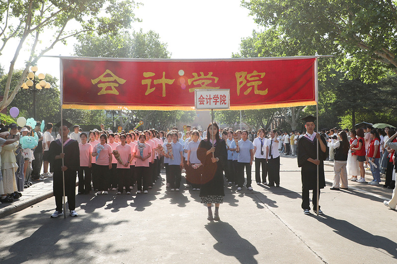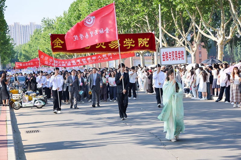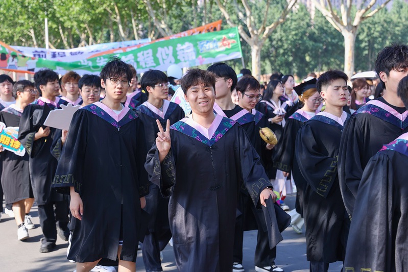 毕业生们身着学士服,沿着熟悉的郑商校园路线阔步前行,与恩师击掌话别,和同窗拥抱致意,让每一步都成为对校园的深情丈量。阳光下,师生间的微笑与拥抱、学弟学妹们的欢呼与送别,共同交织成郑商校园里最动人的毕业图景。