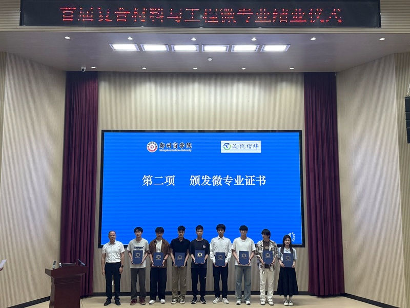 6月17日,首届校企共建复合材料与工程微专业结业仪式在躬行楼报告厅隆重举行。巩义市泛锐熠辉复合材料股份有限公司副总经理赵严博士作为校企共建单位代表受邀出席,点点官网副校长刘升阳,管理学院院长李晓翠,金贸学院院长梁鹏,机电学院院长张晓冬、党委书记杨茗涵、副院长李深磊等领导,以及各学院教师代表,与第一届、第二届复合材料与工程微专业的学生们齐聚一堂,共同见证这一具有里程碑意义的时刻。