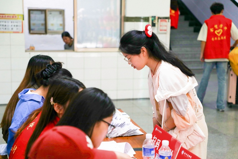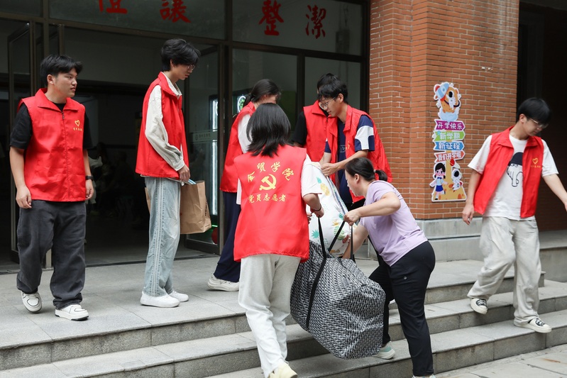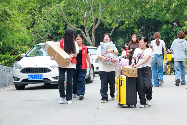 面对新生与家长的期待,各学院新生辅导员和助理辅导员全程在线,始终耐心、热情地解答着每一位学生与家长的问题。宿舍楼下,会计学院辅导员付高原始终忙碌着,从校园环境、设施建设,到专业课程设置与未来发展,他一一向家长介绍,用行动诠释着“让家长放心,让学生安心。”报到期间,阴雨连绵,学校始终牵挂着新生的出行安全,通过多种渠道发布天气预警和安全提示,并做好学生提前或延后报到的准备,管理学院辅导员谢佳音说:“学校暑期就提前组建了新生群,多次讲解入学报到注意事项及所需携带的材料,精准统计每位学生的预计到校时间,为后续高铁、火车接站服务做好了充分准备。报到期间所有迎新服务将风雨无阻地持续运行,确保每一位新生都能顺利安全到校。”