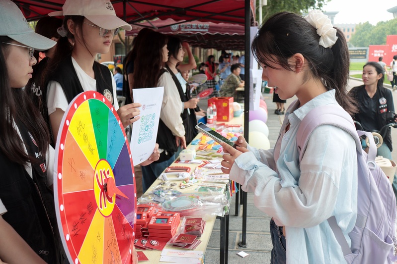 校园内增设有校领导咨询台、医疗保障服务站、防电信诈骗、绿色通道办理处、征兵咨询处、家长休息区、活动互动打卡区、文艺表演等帐篷点,让新生及家长入校即可问询、办事、互动,体验感拉满。在征兵咨询处前,文传学院新生郭兰婷主动了解了大学生入伍的条件和标准,聊起对参军的期待,她语气格外坚定:“我一直向往军旅生活,渴望有一天能穿上军装,磨练意志、锻炼自我。”