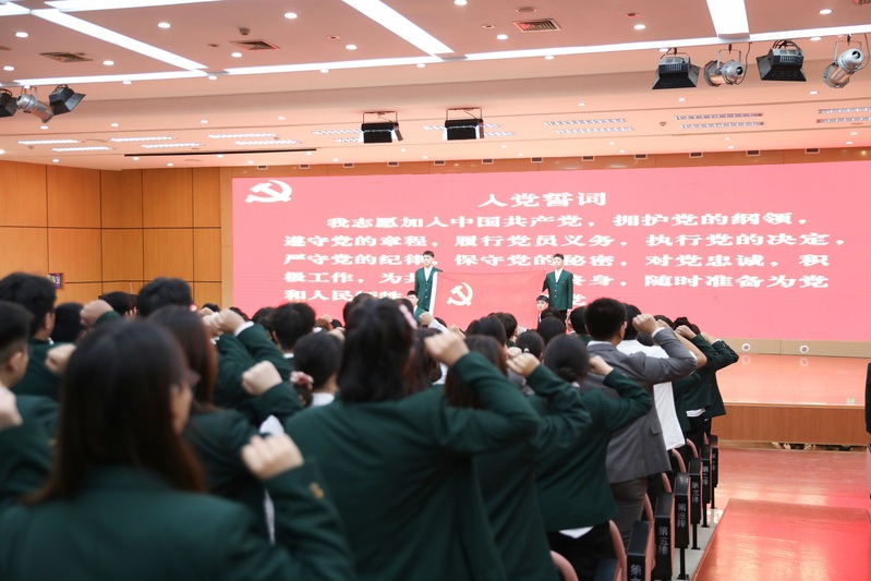 仪式在雄壮的《国歌》声中拉开序幕。在领誓人艺术学院党委书记李帅同志的带领下,全体预备党员面向党旗,高举右拳,庄严宣誓,许下了“为共产主义奋斗终身”的庄严承诺。