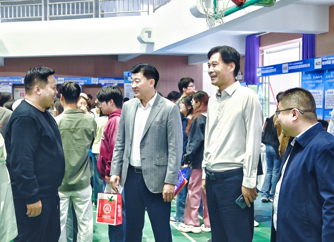 校党委书记吴建军、校长吴泽强等校领导亲临现场指导工作,与企业代表亲切交流,详细了解招聘需求与进展情况,对长期合作企业表示感谢。双方还就深化校企合作、共建实习实训基地等议题现场交换了意见。校领导还与毕业生亲切交谈,鼓励大家结合专业特长与职业规划,理性择业、积极应聘,树立“先就业、再择业”的务实就业观。各学院负责人、教师代表及毕业班辅导员也全程参与,积极对接企业,为毕业生提供精准就业服务。