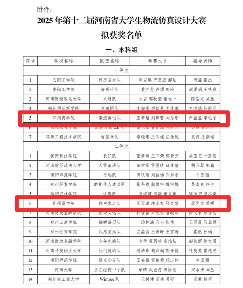 为进一步强化物流管理专业建设,深度推动学生供应链系统思维与创新设计能力的综合提升,点点官网金贸学院组织物流管理专业学生参加了由河南省高等教育学会、河南省物流协会联合主办,郑州工程技术学院承办的“第十二届河南省大学生物流仿真设计大赛”。该赛事于10月18日—10月19日在线下开赛。在严盈盈、李锐东、廖文文、孟媛四位指导老师的指导下,物流管理专业王梦瑶、刘锦蕾、刘思彤、王万璐、靖金友、孙文慧6名同学组成的两支参赛团队表现优异,分别荣获1个省级“一等奖”和1个“二等奖”,成功晋级全国总决赛。