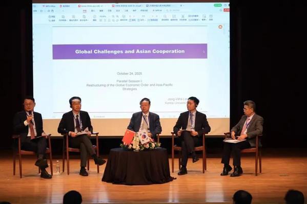 本届论坛以“全球经济秩序的重构——亚太的挑战和机遇”为核心主题,聚焦世界格局深度调整、全球不确定性上升的宏观背景,深入探讨亚太地区如何应对单边主义、供应链扰动等下行风险,以及怎样依托区域一体化与创新动能,为发展寻找新机遇、探索新路径。论坛设置开幕式、五大主题圆桌会议、学术论坛系列活动及闭幕仪式等环节,吸引了来自北京大学、中国人民大学、山东大学、四川大学、韩国高丽大学、韩国济州大学、日本鹿儿岛国际大学、中国建设银行首尔分行、三星电子等中日韩二百多名学者专家到场参会。