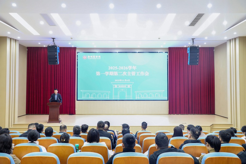 校长吴泽强在讲话中指出,本次会议既是本学期第二次主管会,也是迎评前的动员会。他系统回顾了上阶段各单位聚焦审核评估、教育教学等工作取得的一系列成效,安排部署了下阶段重点工作:教务处要开展好期中教学检查工作,学务处和各二级学院要持续加强学生安全管理,人事处要公平、公正、公开做好2025年度职称评审准备工作,招生就业处要开好就业创业工作总结会。吴校长要求,各部门要全力以赴做好迎评工作,以时不我待的紧迫感和舍我其谁的责任感投入到审核评估工作中,确保高水平通过审核评估,助力学校事业发展实现新跨越。