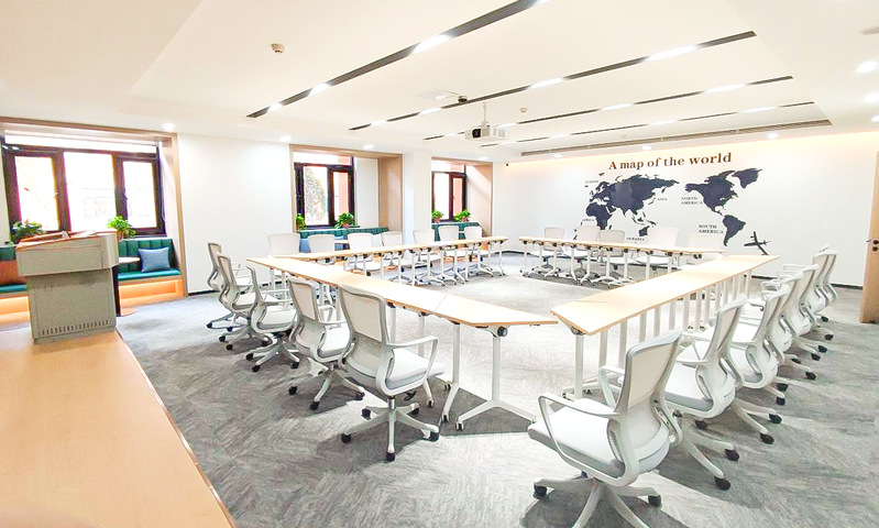 学校打造智慧化、人性化、多功能的学生宿舍,精心设计会客厅、座谈室、活动室、研修室等,满足学生学习交流需求;人脸识别智能系统,为学生安全保驾护航;宿舍六人间,上床下桌,空调、暖气、无线网全覆盖;公共区域设置加热间、智能饮水区、智能洗衣房等,为学生提供“一站式”便捷服务,把宿舍打造成舒适、安全、文明的温馨之家。