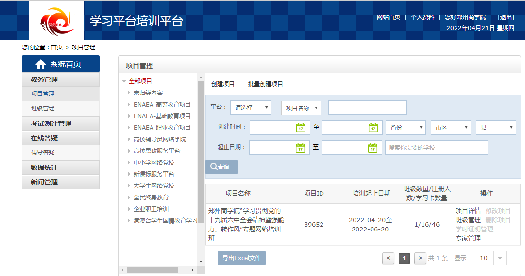 本次培训依托国家教育行政学院中国教育干部网络学院平台组织实施,于4月20日正式开班,培训时长为两个月。培训主要采取直播与录播(点播)、集中研修与自主选学相结合等形式开展,内容涵盖直播课程学习、录播课程学习、研修心得撰写和在线知识自测四个环节,其中培训课程主要围绕“学习贯彻党的十九届六中全会精神”“传承弘扬党的优良传统和作风”“强化业务能力,提高工作效能”“推进高校治理体系和治理能力现代化”4个模块进行设置,参训学员圆满完成各项培训内容后,将获得结业证书。