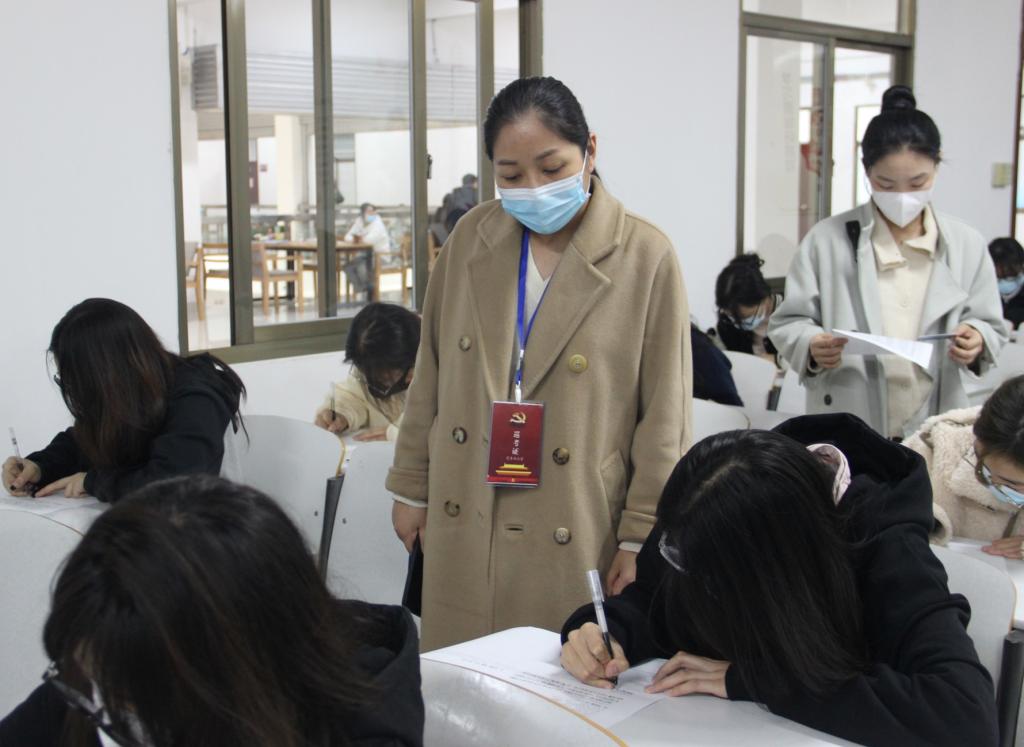 本次考试严格落实学校各项防疫措施,考生入场时须佩戴口罩,出示健康码,有序排队进入考场。开考后,监考人员强调了注意事项和考场纪律。考试过程中,考生严格遵守考试纪律,认真答题,态度端正,展现出良好的考试风气,用实际行动向组织交了一份满意的答卷。本次考题紧扣党的二十大精神、党章党史、党员发展程序等党的基本知识,旨在检验入党积极分子的理论学习成果,以及对党课培训内容的掌握程度,强化了入党积极分子们对党的相关政治理论知识的认识与了解。