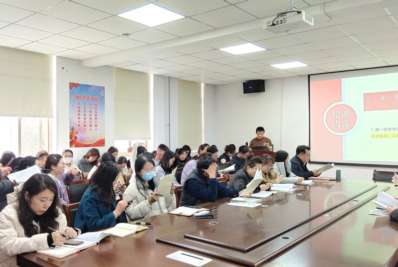 持续强化党建引领,筑牢凝聚发展共识。外国语学院高度重视思想建设,通过组织党员深入学习贯彻习近平新时代中国特色社会主义思想,不断提高政治站位。始终坚持以政治建设为统领,严格落实“第一议题”制度,抓实“三会一课”质效,坚持党委委员带头学、中心组集中学、支部组织学、个人主动学、持续跟进学、实践教育学的“六学”机制,每周组织全院教职工认真学习审核评估指标体系、知识手册、政策解读等内容,让每一位党员、教职工熟悉评估指标体系,明确自身在评估工作中的职责,形成“人人了解评估、人人参与评估”的良好氛围。