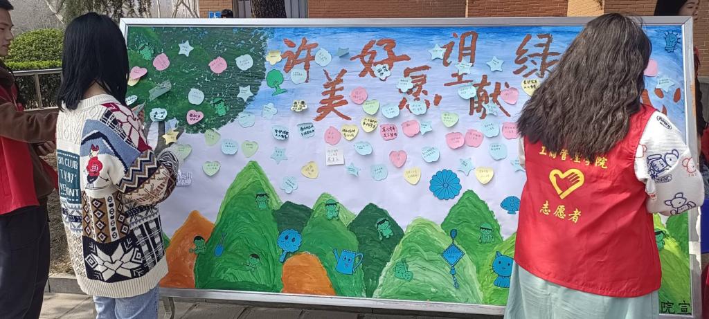 阳春三月万物苏,植树播绿正当时。为逐步提高我院的绿化意识和文明理念,我院青志大队于3月11日上午,在2号楼门口举办了植树节签字活动,以此来激发广大同学们的保护环境的意识和热情。