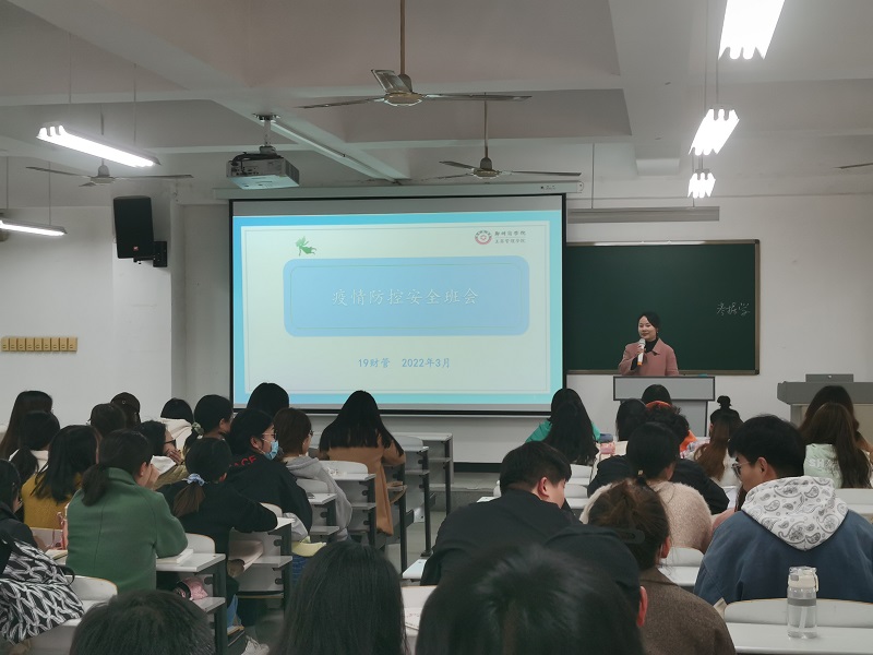 会后,各班辅导员组织开展疫情防控专题班会。辅导员们向学生传达了当前疫情防控形势的严峻性和复杂性以及学校疫情防控工作的各项要求,强调了防疫的重要性,增强学生的责任意识和防护意识,并提醒同学们要严格做好日常疫情防控工作。科学佩戴口罩,关注自身健康状况,做好寝室教室的消毒通风工作,非特殊情况不得出校。牢记常态化疫情防控下的安全防范知识与注意事项,做好长期防护准备。