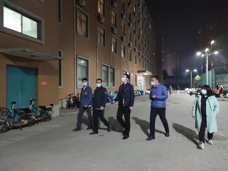 为持续推进疫情防控常态化学生管理工作,深入落实“六化一家园”建设,维护校园安全和宿舍稳定和谐,3月29日晚,工商学院党委书记宋森、团委书记董文浩、生辅科科长朱宏东、生辅科宁震海老师以及辅导员代表巡视校园、宿舍及围墙等地,工商学院全体辅导员深入学生宿舍。