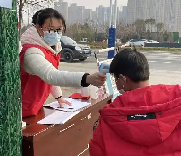 19工商4班王洲洋,疫情就是命令,防控就是责任。为响应国家与学校对青年大学生的号召。他在1月13号当天成为了当地的一名志愿者,主要工作内容就是对前往黎集镇政府疫情防控来访人员进行信息登记,体温测量,健康码行程码的出示以及行车信息记录。