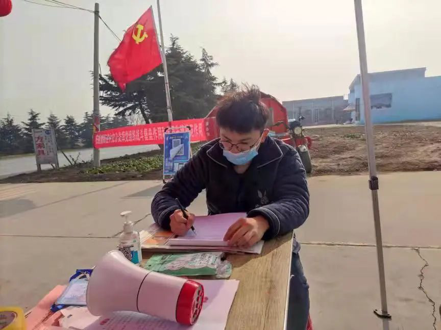 19营销1班丁鹏,身为一名共青团员,志愿加入开封市大李庄乡北刘村的疫情防控卡点工作,在这里的主要工作是对来往人员和车辆进行登记。我们的岗位也许普通,也许平凡但在抗击疫情的战线上离不开志愿者的无私奉献。 在抗疫过程中,使我更加坚信了学习的信念,作为新时代的力量,我们也将发挥我们的力量强大自身,强大祖国。用一份热,发一份光,与爱同行,战役必胜!