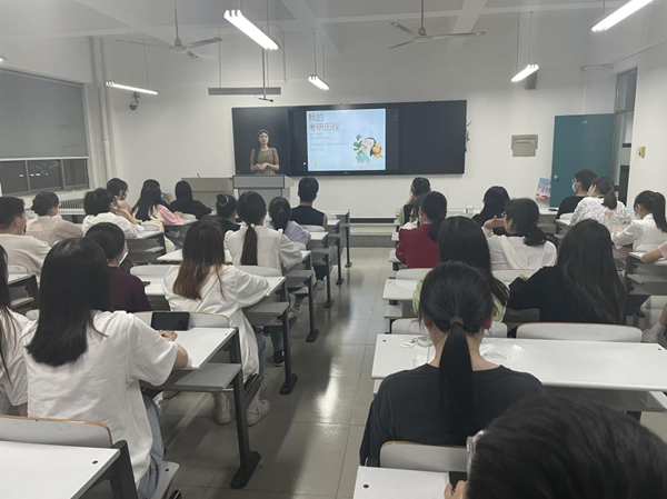 王京华同学以选择大于努力为主题进行分享,王京华同学认为首先应该对自己有正确认识,然后对即将选择的学校和专业有全面了解,能够基本判断自己是否与所选择的学校和专业是否匹配以及上岸可能性等,最后王京华同学认为考研需要注意三点:第一是要有计划,第二要持之以恒,第三要有良好的身体,第四要按部就班,不要着急。两位同学的精彩分享赢得了大家的阵阵掌声和欢乐笑声,既让学生学会了如何选择学校,也让学生了解到考研成功上岸需要做详细计划等,同时两位同学留下了联系方式以便于学弟学妹与自己沟通交流。