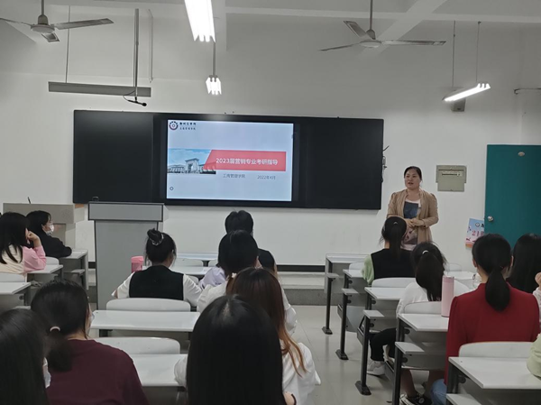 为了提高学生选校和选方向的质量,并对学生考研过程如何进行规划,进而提升营销教研室考研升学质量,市场营销教研室于4月11日晚上在2号楼202教室特邀请2022届考研上岸毕业生做经验分享交流会。出席此次分享会的老师有教研室主任张玲燕老师,考研指导老师苗瑞洲,考研上岸的18营销专业学生杨梦蕊同学和王京华同学以及2023年意愿考研的全体营销班同学。