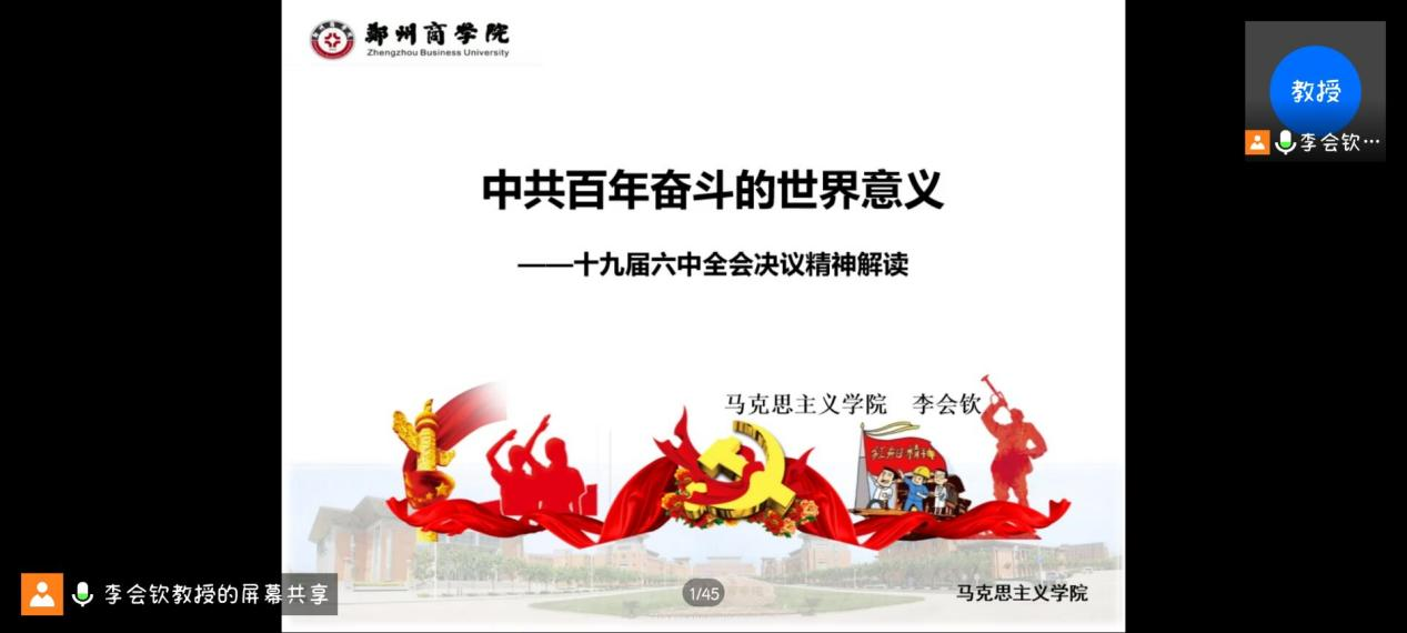 为深入贯彻落实习近平新时代中国特色社会主义思想,进一步持续开展党史学习教育,4月2日晚,李会钦教授以中国共产党建党百年重大成就的世界意义为主题,以线上教学的方式,为积极分子讲授业余党课第三讲。