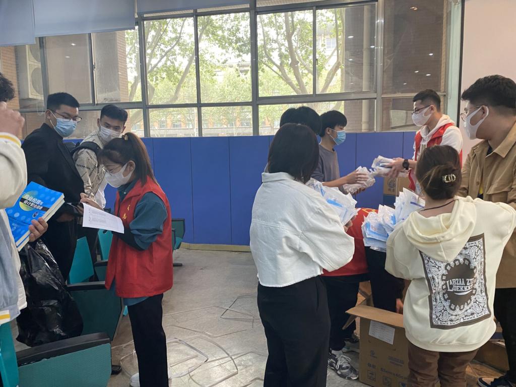 为积极响应疫情防控措施,做好新冠疫情防控常态化背景下教育教学工作,4月12号下午,学生第一党支部党员及积极分子自发组成志愿者队伍,为全院师生发放口罩,抗牢防控责任坚决打赢疫情攻坚战。