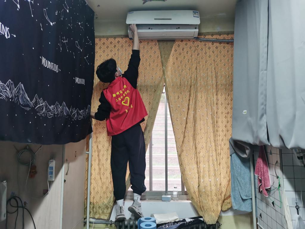 随着夏季的到来,为了让学生度过一个清凉的夏季,学生第一党支部党员及积极分子自发为我院学子提供清洗空调服务,男生负责拆除及安装空调滤网,女生负责仔细清洗,擦干,整个过程分工明确,各司其职,高效有序。这次活动不仅能增进了同学之间的感情,也有效确保了在盛夏来临之际为学生提供温馨、舒适、整洁的宿舍环境。