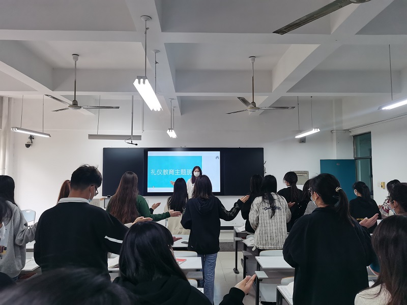 在学习礼仪课程和礼仪宣讲的同时,工商管理学院以班级为单位组织开展了礼仪教育主题班会,在学生中营造了将礼仪教育贯彻始终的良好学习宣传氛围,教育引导学生把文明礼仪潜移默化融入日常并影响身边人,做到“毋以善小而不为,勿以恶小而为之。”把功德装在心中,把法律记在脑海,把文明礼仪融入生活,从点滴做起,做有礼有节的文明人,做新时代崇礼、知礼、明礼、学礼的郑商学子。