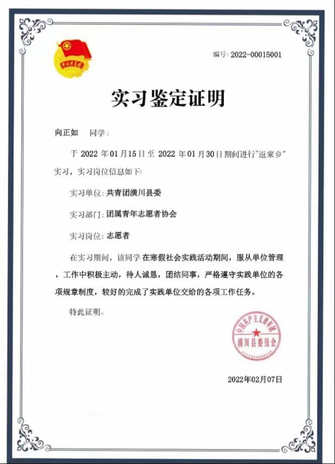 向正如同学作风严谨,深受老师和同学们的一致信任和好评。大一一开学的时候,向正如便通过竞选当上了室内劳动委员,该生在工作上大胆创新,协助其他班委踏踏实实地完成学院劳动教育的各项任务,切实起到了沟通学院和同学们的桥梁纽带作用。