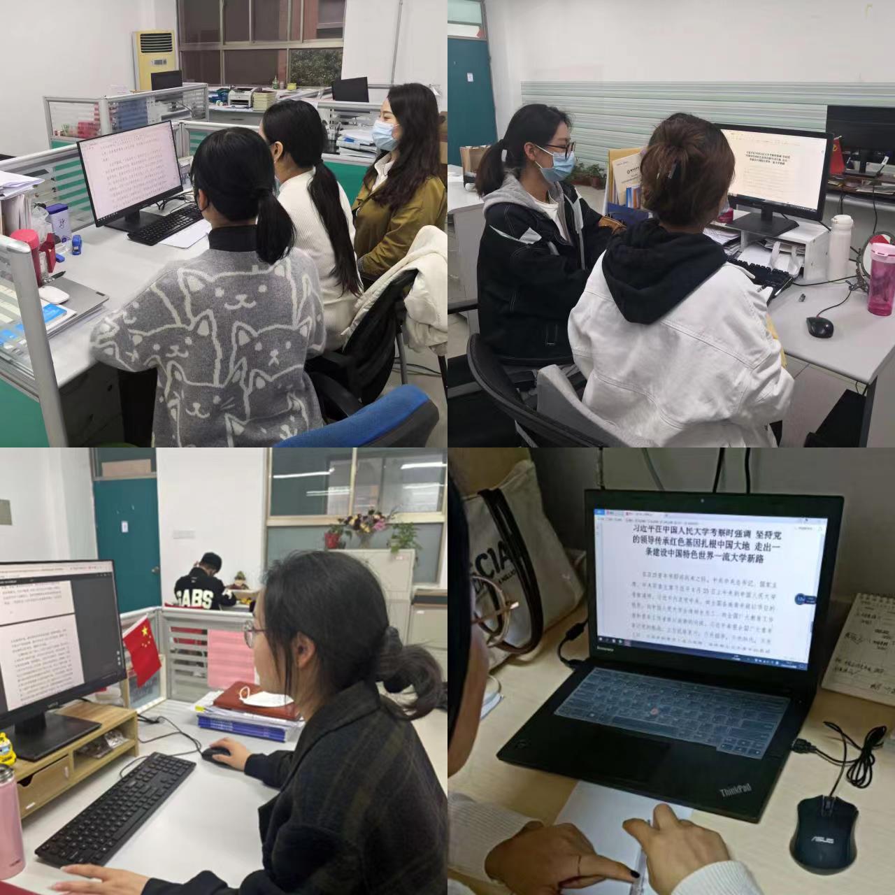 各支部、各教研室以支部和教研室为单位深入学习了习近平总书记在中国人民大学的重要讲话并针对讲话内容进行研讨和学习心得分享。通过学习研讨后,大家纷纷表示:将会继续坚持以习近平新时代中国特色社会主义思想为指导,深刻学习领会习近平总书记发表的重要讲话精神,全面贯彻党的教育方针,落实立德树人根本任务,坚持为党和人民事业服务,始终牢记“为谁培养人、培养什么人、怎样培养人”这一教育根本问题,努力做精于“传道授业解惑”的“经师”和“人师”的统一者,不断提高自身道德修养,以模范行为影响和带动学生,做学生为学、为事、为人的大先生。