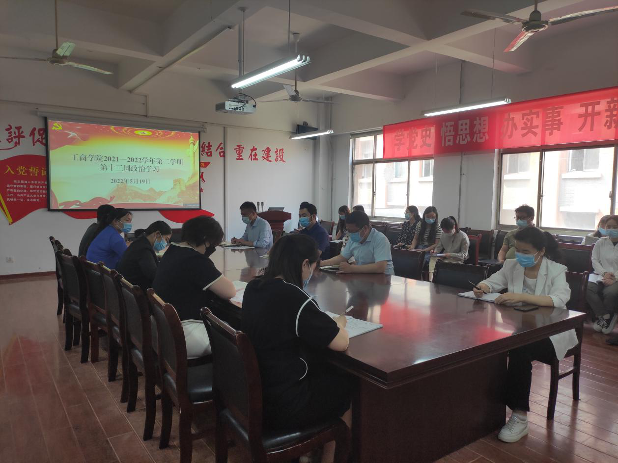为深入学习和贯彻落实习近平总书记在中国共产主义青年团成立100周年大会的重要讲话精神和学习河南省委“十大战略”学习手册,5月19日下午,工商学院严格按照疫情防控部署要求采用集中加分散自主学习的形式开展本周政治学习。
