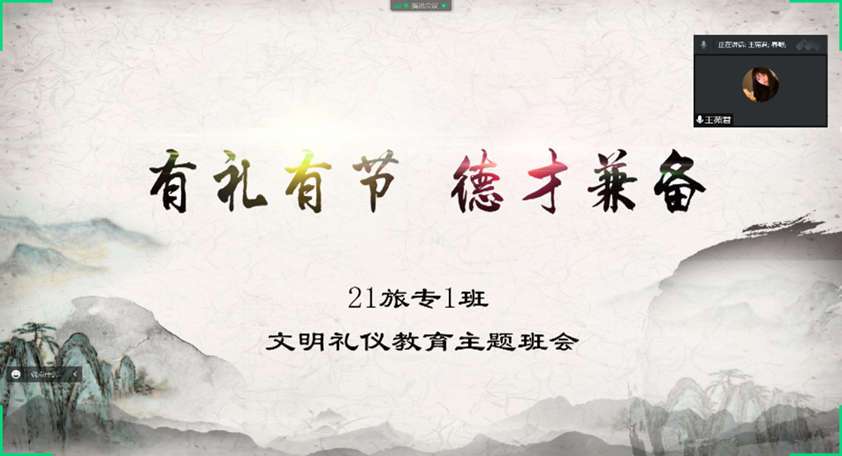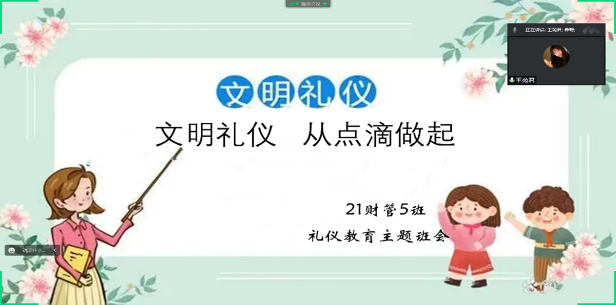 第一模块:礼仪教育主题班会。礼仪活动开始前期21级参与班级分别召开了线上礼仪教育主题班会,详细安排活动注意事项以及活动准备。