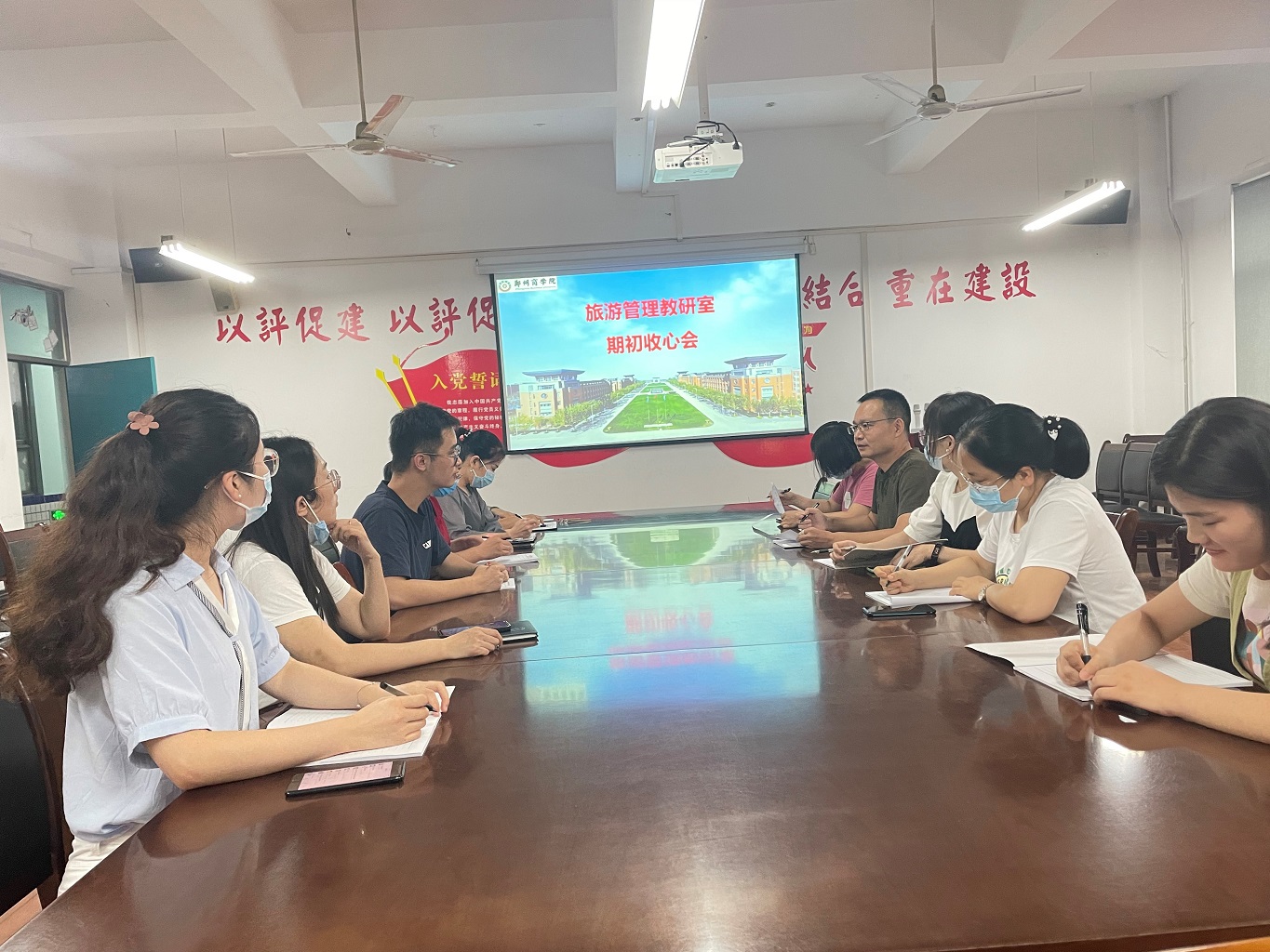为了让老师们的精神状态尽快从假期中调整出来,以饱满的工作热情积极投入到即将开始的新学期各项工作中去,8月22日下午,旅游管理教研室召开了期初教学工作会议。会议由旅游管理教研室主任王彦青主持,全体教研室老师参加了本次会议。