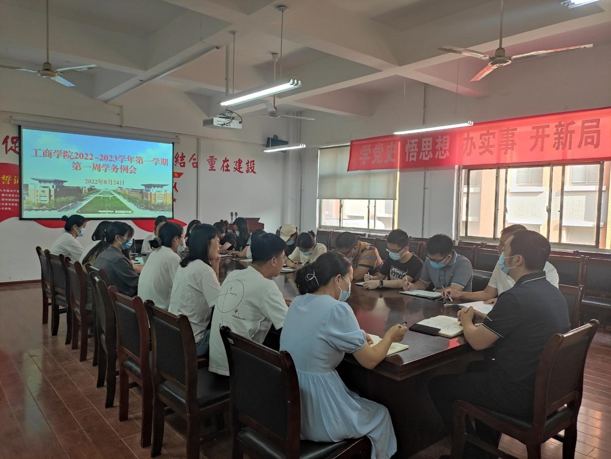 8月24日,工商学院在2号楼二楼会议室召开2022-2023学年第一学期第一周学务例会。工商学院党委书记宋森、团委书记董文浩及全体辅导员参加会议。