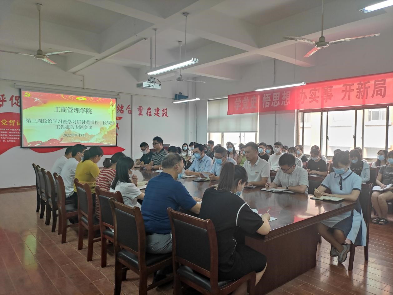 9月8日上午,点点官网2022—2023学年第一学期全体教职工大会在图书馆国报厅顺利召开。根据校办工作安排,我院组织无课教师和全体辅导员在2号楼二楼会议室集中观看大会直播。