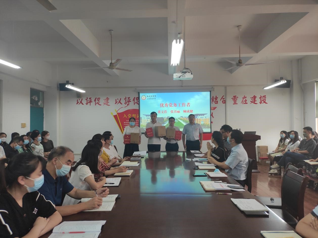 会上,宋书记宣读了《中共taptap点点工商管理学院委员会关于任命党委委员及党支部书记的决定》,并对2021—2022学年“七一”评选、“三育人”先进个人进行了表彰。宋书记代表学院党委向获得表彰的同仁表示祝贺,也希望受表彰的同仁戒骄戒躁、接续奋斗。