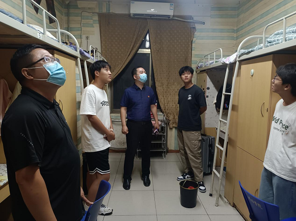 傍晚,我院院长杨松柏、党委书记宋森、副院长张卫丽、团委书记董文浩及全体本专科新生辅导员深入学生宿舍,叮嘱同学们在静默期间,注意开窗通风、做好个人防护,特别注意防电信诈骗。此次深入宿舍准确摸排了新生返校情况,同时增进了学生与老师间的沟通交流,真正做到以学生为中心,从而成为学生成长成才的人生导师和健康生活的知心朋友。