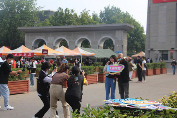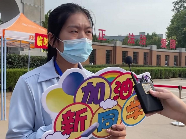 与此同时,新媒体工作室的同学也采访了迎新现场的新生、家长、新生辅导员和志愿者们。