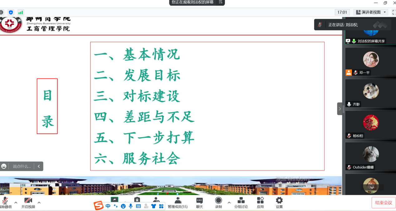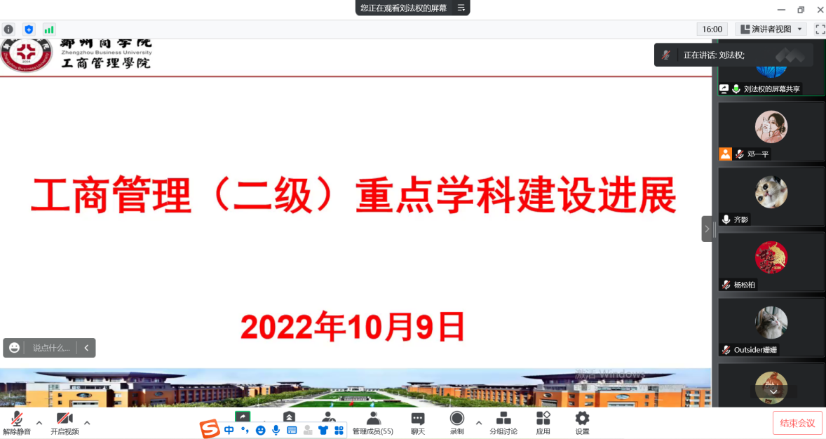 为了更好地建设我院的学科专业,促进教师的职业发展,提高教学质量。工商管理学院于10月9日下午在腾讯会议上开展了教学“知与行”系列活动之二——学科专业建设分享会。本次会议由工商管理学院学科教研室主任刘法权副教授主讲。杨松柏院长、张卫丽副院长及全体教师参加了本次活动。