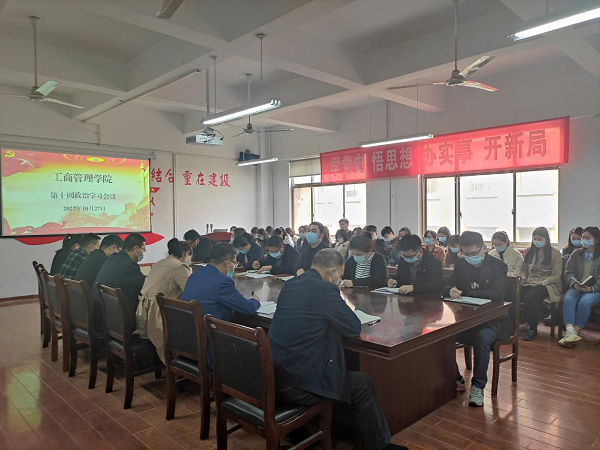 10月27日下午,工商学院在2号教学楼二楼会议室组织开展2022-2023学年第一学期第十周政治学习专题会议,工商学院院长杨松柏、党委书记宋森、副院长张卫丽及全体无课教职工参加会议。