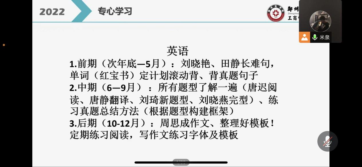 此次线上会议的召开,使同学们收获了考研过程当中宝贵的经验与方法,更加深刻体会到了努力与坚持的重要性,为助推我院考研学子成功上岸奠定了基础。
