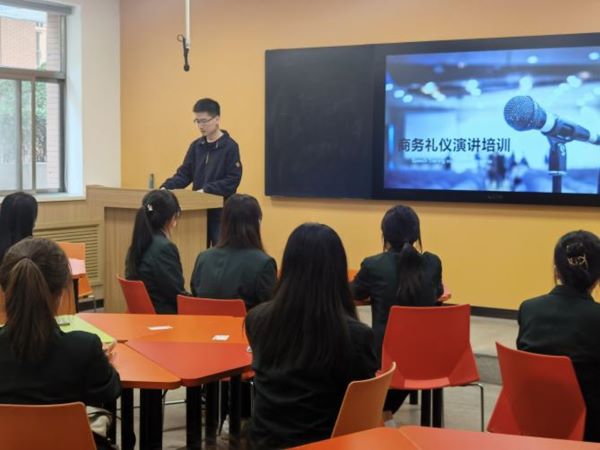 其次,谢佳音老师从面试礼仪、办公室礼仪、商谈礼仪、用餐礼仪等为大家讲解了商务礼仪中的基本知识,并且从礼仪的基本概念、仪容仪表仪态、日常礼仪应用三个方面进行了详细讲解,使同学体会到礼仪在生活中起到的重要作用。