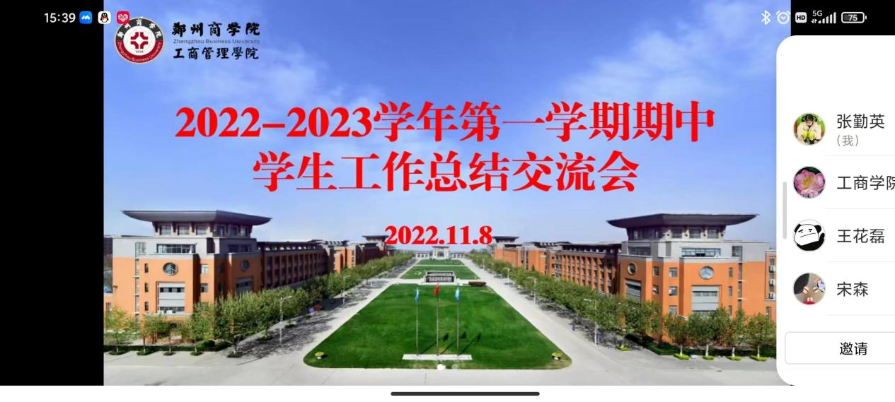 11月8日,我院组织开展2022-2023学年第一学期第十二周学务例会暨期中学生工作总结交流会。通识中心主任王花磊、工商学院党委书记宋森、心理咨询中心科长贠芸、通识中心团委书记殷晴波、工商学院团委书记魏瑶及通识中心、工商学院全体辅导员参加会议。会议通过线上+线下形式进行,会议由魏书记主持。