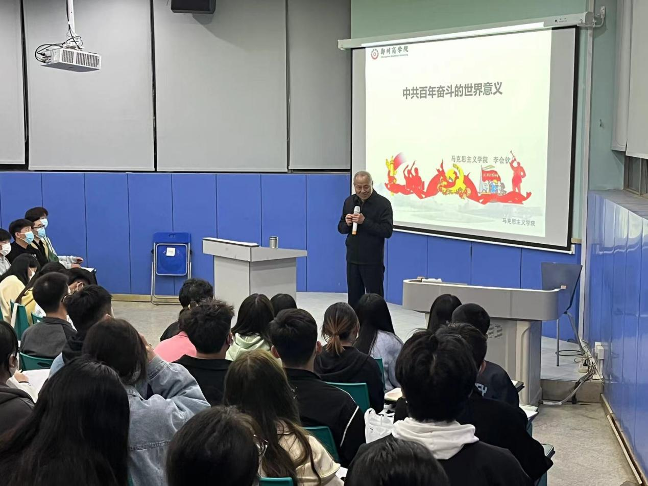 10月27日晚,工商管理学院于2号楼401教室召开了第三十五期党课培训第三讲——“中国共产党的成立和伟大建党精神”,此次培训由王苏民教授主讲。王苏民教授用其扎实的党务知识以及幽默风趣的语言,借助图片及文字材料,向在场的一百多名积极分子深入浅出地分析了中国共产党艰辛的成立过程。并向同学们具体解释了伟大建党精神的内涵。听完王苏民教授的讲课,同学们都获益匪浅。