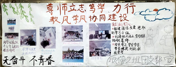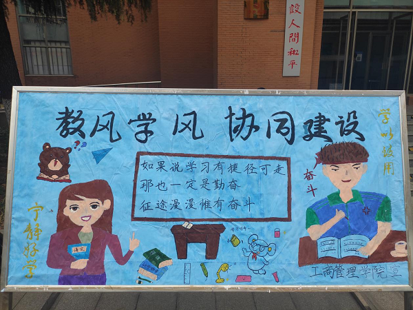 为使同学们在良好的学习氛围中提高自身修养,增强竞争意识,形成创优争先的整体风尚,树立正确的学习态度,我院开展制作学风建设主题板报活动。同学们都展示出了自己丰富的想象设计能力和绘画能力,在全院掀起了班风学风建设的高潮。
