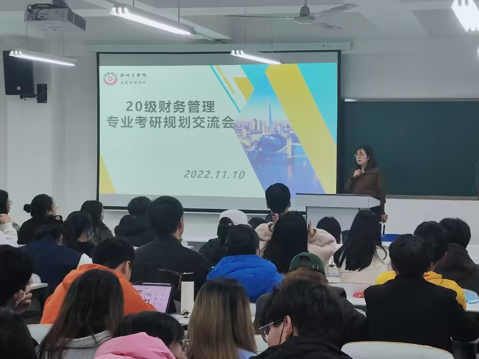 为做好教风学风协同建设工作,更全面地帮助20级财务管理专业学生对考研进行合理的统筹规划,11月10日晚,我院在2号楼501教室召开20级财务管理专业考研规划交流会。我院副院长张卫丽、财务管理教研室主任李鸿春、20财管1班兼职班主任张倩丽、20财管2班兼职班主任李心地、辅导员老师张金凤及全体20级财务管理专业学生参加本次会议。