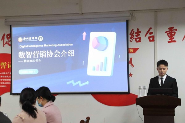 会上,杨院长阐释了数智营销协会的意义,数智营销协会是市场营销专业产学研协同育人的平台,以“创意携手创业”为指导思想。强调了数智营销协会的性质,充分把握数字营销新融合、新生态的时代趋势,通过开展主题鲜明、专业性强、形式多样的营销策划专题活动,丰富会员的营销知识,激发广大同学创意,提高营销实战能力,为推广点点官网市场营销专业和选拔营销类比赛人才做准备,进一步拓宽学生新营销视野,提高学生的专业技能。同时指出,协会作为学生的第二课堂,协会干部要以高标准严格要求自己,通过比赛学习明确自己的人生规划,做好以老带新,将数智营销协会传承下去。