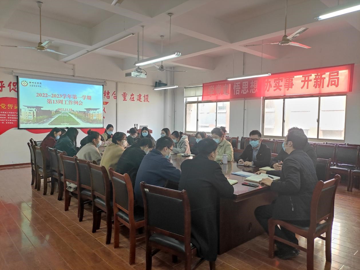 11月15日上午,我院组织召开2022-2023学年第一学期第十三周学务例会,我院党委书记宋森、团委书记魏瑶及全体辅导员参与会议。
