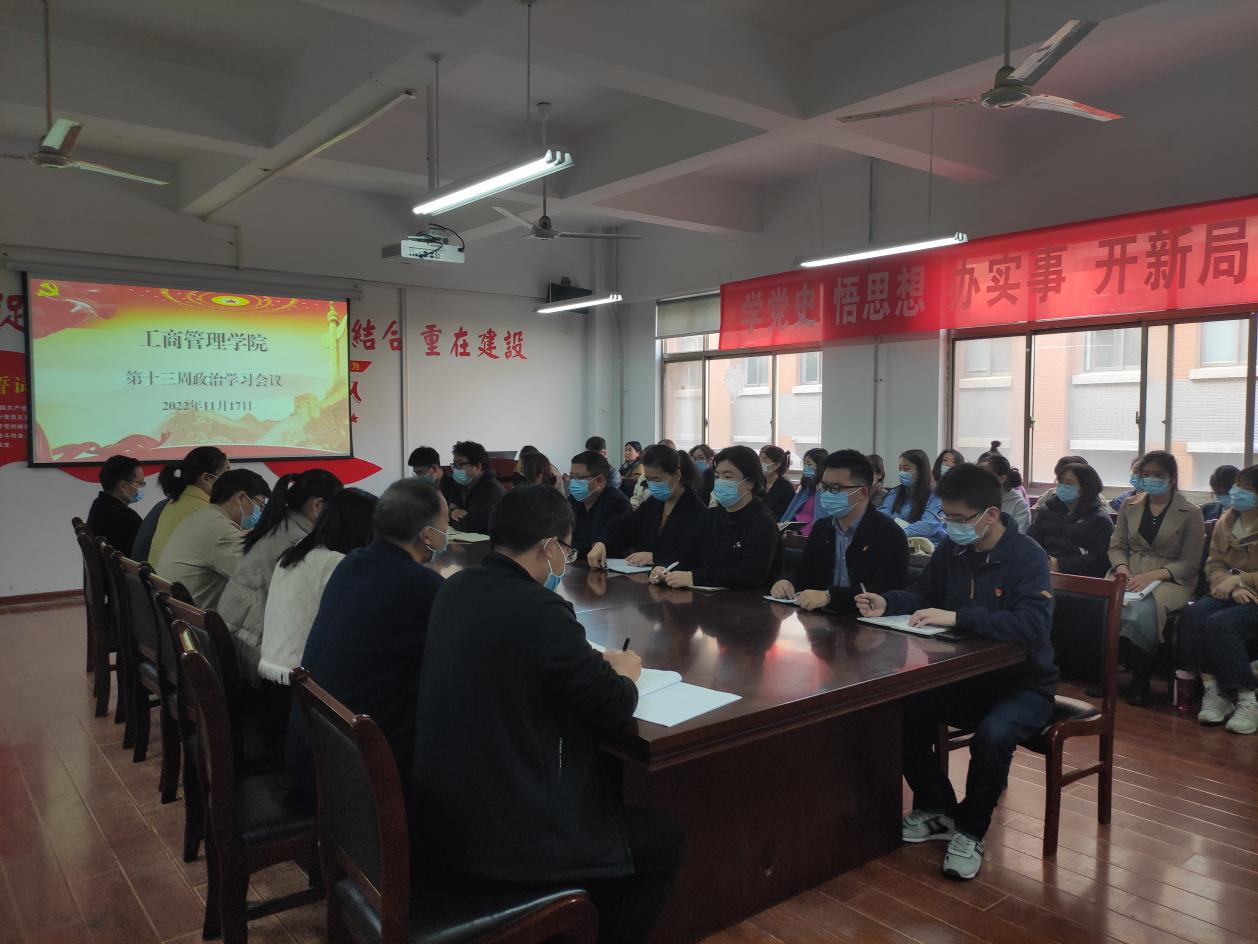 11月17日下午,我院在2号教学楼二楼会议室召开2022-2023学年第一学期第十三周政治学习专题会议,我院院长杨松柏、副院长张卫丽及全体无课教职工参加会议。