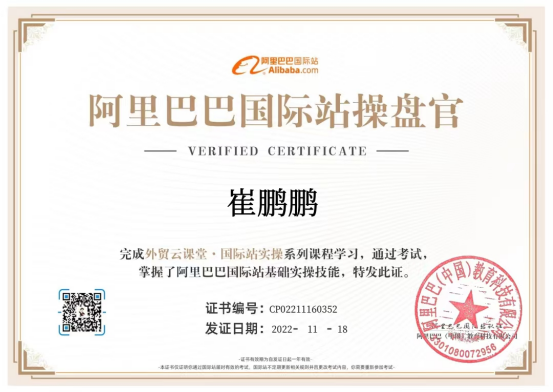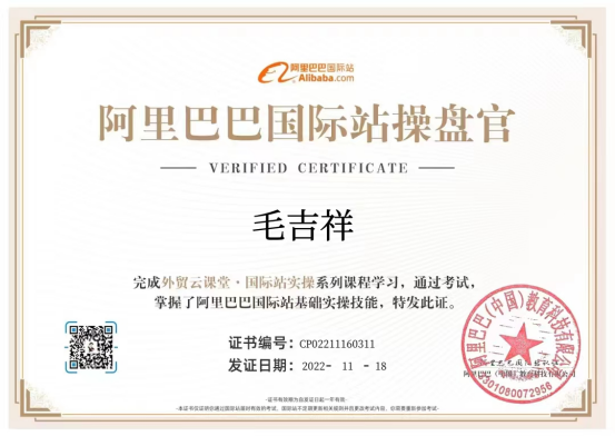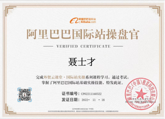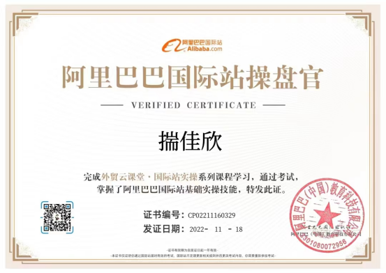 此次实习安排分为线上学习部分和线上实训场地观摩部分。线上部分为登录阿里巴巴国际站外贸云课堂,课程内容包括店铺基础建设、产品发布与管理、店铺基础营销、店铺付费营销、跨境电商数据分析、商机获取、客户管理、交易管理、履约服务等9部分37个任务点,学习完毕,同学们通过考试获得阿里巴巴国际站操盘官认证资格证书。线下部分为参观和体验跨境电商实训室和国际营销沙盘实训室。