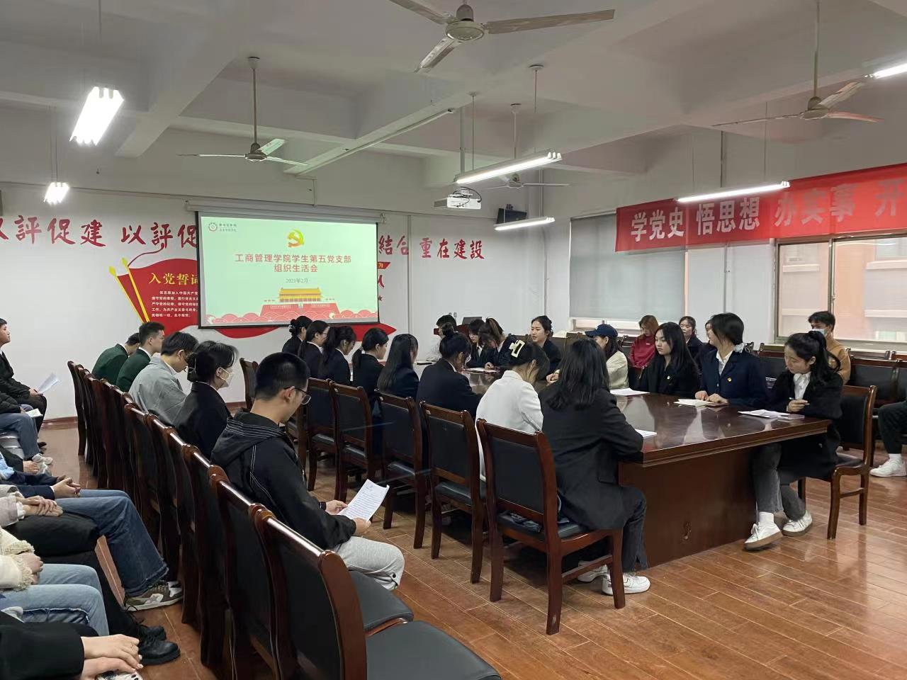 2月28日,工商管理学院学生第五党支部召开了组织生活会。支部书记李雪艳同志主持会议,组织委员杜江鹏、宣传委员黄晓及全体党员参与此次会议。