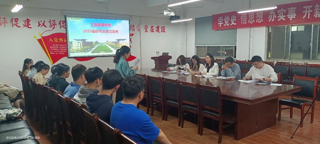 为扎实做好考研学生的精准指导和服务工作,实现高质量面试,3月9日下午,工商学院在2号楼202召开2023届研究生复试指导会,杨松柏院长、张卫丽副院长出席,各专业教研室主任、任焕琴教授、考研指导老师及2023届考研学生参加会议。
